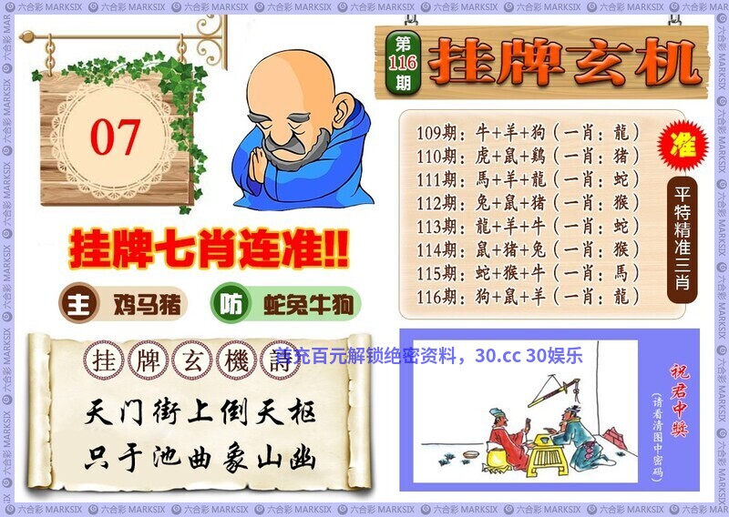 120期最老版无字天书:羊前跟二五六到,一对三七终点来。羊30