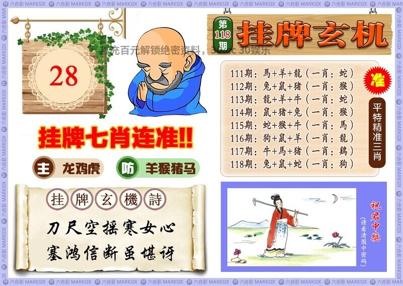 120期挂历诗:三一三二落今期,看定四无有旺出。