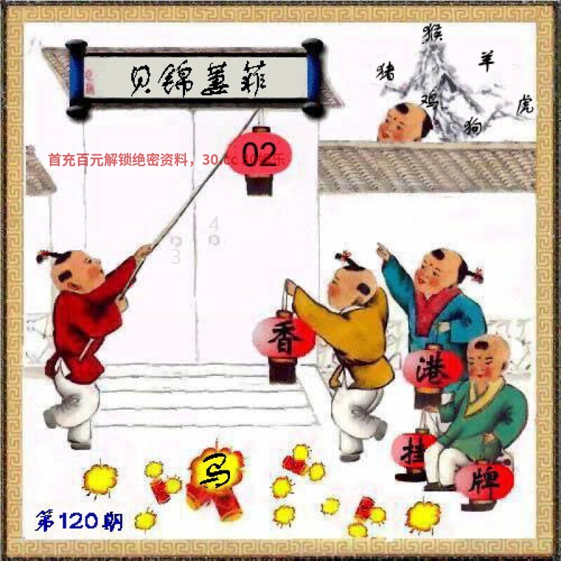 120期正版彩图挂:02爆:马 挂牌成语:贝锦萋菲 挂牌出肖:猪鸡狗猴羊虎。
